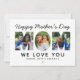 Schaffen Sie ein stilvolles und unvergessliches Geschenk für die Mama dieses Muttertags! Diese individuell gestaltete, flache Grußkarte enthält eine Collage von drei Lieblingsbildern der Familie, die als moderne und kühn serifenlose Schrift entworfen wurden. Personalisieren Sie den benutzerdefinierten Text mit den Namen der Kinder. Enthält einen rosa Herzinfarkt.