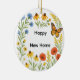 This "new home" ornament presents a vibrant floral wreath design alongside the greeting, "Happy New Home". The reverse side features the message, "A new home, a new beginning, a place where memories grow", along with a personalized date space, transforming it into a meaningful gift and cherished keepsake.