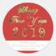 Happy New Year 2019 Red and White Gold Script Runder Aufkleber