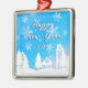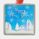 Happy New Year 2023 Blue White House Snow Ornament Aus Metall
