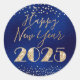 Happy New Year 2025 Blue and Gold Glitzer Diamonds Runder Aufkleber