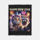 Happy New Year 2026 Cute Cat Raccoon Celebration Fleecedecke