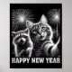 Happy New Year 2026 Cute Cat Raccoon Celebration Poster