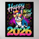Happy New Year 2026 French Bulldog Fireworks Party Poster