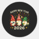 Happy New Year 2026 Gnomes Fireworks Party Runder Aufkleber