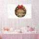 The wreath and ornaments create a luxury gold event backdrop charm.