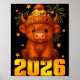 Happy New Year 2026 Highland Cow & Party Hat N Poster