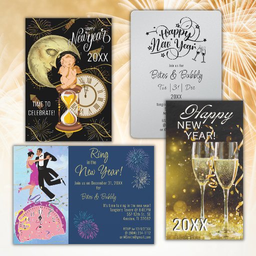 Hier ist eine einfache, aber elegante Party Einladung für das Klingen im neuen Jahr! Es zeichnet sich durch ein goldfarbenes und schwarzes Design mit funkelnden Champagner-Gläsern und den Worten Happy New Year aus! 2023 vorne. Mehr Schwarz und Gold auf der Rückseite mit den Worten "Eine besondere Einladung" - leicht aktualisieren Sie den Platz Inhaber Text auf der Vorderseite und wieder auf Anzug Ihre Bedürfnisse und Sie haben eine atemberaubende Einladung in kürzester Zeit überhaupt.