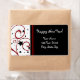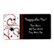 Happy New Year Adress Labels in klassisch rot, schwarz und weiß mit eleganten Wirbel und Sternenmustern, die perfekte Ergänzung zu Ihren Neujahrskarten und Umschlägen.
