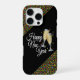 This iPhone case features a black background, two champagne glasses, colorful confetti and the wording: Happy New Year.