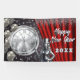 Classic silver, black, and red tones give this banner a timeless, upscale appearance suitable for both private parties and public events.