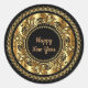 Happy New Year, elegantes Schwarz und Gold, Runder Aufkleber