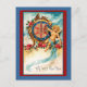 Großartiges Bild aus einer Vintagen Happy New Year Card mit einem hübschen kleinen Engel in der Nähe eines verzierten Uhr Set um 12.
