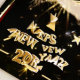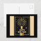 Eine festliche Neujahrskarte mit einem goldenen Feuerwerk auf schwarzem Hintergrund. Die Worte "Happy New Year" werden in fett gedruckten, goldenen Buchstaben dargestellt, und das Jahr 2025 ist elegant unten positioniert. Die Karte wird von einer subtilen cremefarbenen Farbe umrahmt, die das feierliche Thema verstärkt. Ein glatter goldener Stift neben der Erholung, was auf die Bereitschaft zu einer persönlichen Nachricht hindeutet.