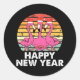 Happy New Year Funny Pink Flamingo Enthusiast Runder Aufkleber