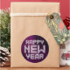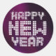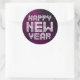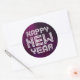 Anpassbare Happy New Year-Aufkleber für ein glitzerndes Silvester-Party mit glitzerndem Text auf seidig lila (Hintergrundfarbe kann geändert werden). Auch passende Grußkarten, Ornamente und Party Einladungen sind verfügbar.