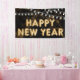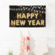 Dieses Happy New Year Banner mit Goldfolienballons und Saitenleuchten auf schwarzem Hintergrund. Personalisieren Sie es mit einem Jahr.