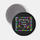 Dies ist einer meiner zeichnete im Neujahr, den ich "Glückliche Neujahrsgrüße" nenne, und ich habe farbenfrohe Party-Raster und konfetti- und farbenfrohe Polka-Punkte als Hintergrund zu meinem zeichn hinzugefügt, sodass mein Neujahrszeichn farbenfroh und einzigartig ist. Jetzt können Sie meinen zeichn auf diesen runden Magneten bestellen, diesen runden Magneten können Sie in Kleinen 1/4 Zoll, Standard 2 1/4 Zoll und Groß 3 Zoll bestellen. Dieser runde Magnet macht Ihren Kühlschrank zu einer wunderschönen Dekoration, um ein neues Jahr zu feiern.