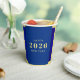 Gute Weihnachts-Urlaubspapiere mit blauen Farben und Goldtext. Große Papiertassen für diejenigen, die Party Vorräte wollend, um das neue Jahr zu feiern. Schöne Farben in Blau und Gold. Benutzerdefinierter Text auf der Vorderseite. Verwenden Sie die Vorlage, um Ihre eigenen Happy New Year Blue und Gold Feiertagspapiere Cups zu erstellen.