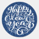 Happy New Year Modern Calligraphy Blue Glitzer Runder Aufkleber