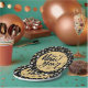 Happy New Year Party - schwarzer Hintergrund, küssen Sie mich, Bogen-Krawatte, Silber- und Goldhut, Champagnerflasche und Drink, Mitternacht-Uhr