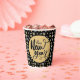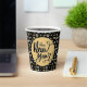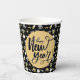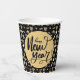 Happy New Year Party - schwarzer Hintergrund, küssen Sie mich, Bogen-Krawatte, Silber- und Goldhut, Champagnerflasche und Drink, Mitternacht-Uhr