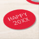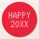 Happy New Year Red White Custom Number Moderne Runder Pappuntersetzer