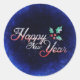 Auf diesem runden Holiday Aufkleber wird hübsches, Happy New Year mit Heiligenschein vorgestellt. Ideal für das besondere Mailing, Dekoration, Kunsthandwerk und mehr für die Silvestersaison!