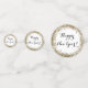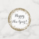 Eine weiße Tischdekoration aus Happy New Year mit einem bedruckten Gold Glitzer Design und einer Script-Nachricht. Editieren Sie mit dem Texteditor, um Ihre eigene Nachricht auf jedem Stück zu erstellen, wenn Sie möchten. Ideal für einen lässigen und extravaganten Silvesterabend, um sich auf Tischen und Oberflächen zu verstreuen.