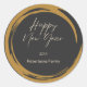 Happy New Year Text Gold Fleck Ring dunkelgrau Runder Aufkleber
