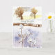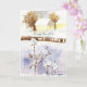Happy New Year greetings featuring a yellow house the morning after a snowstorm with a fresh blanket of snow softening all the colors of the landscape hand painted with watercolor. On the inside is a coordinating shade of lavender and text you can edit to fit your needs.