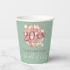 Retro Vintage-Stil Party Tisch Dekoration Papier Tassen in rosa Tönen auf Teal-grüne Hintergrund für ein neues Jahr Vorabend 2025 Abendessen Party feiern! Party-Tassen. Alle Textsätze können angepasst werden.