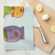 Ein Küchentuch mit einer skurrilen Illustration mit 3 fröhlichen Kakteen, die in ihren eigenen Blume-Töpfen sitzen. Jeder von ihnen hat seine eigenen einzigartigen Ausdrücke, die lächeln und glücklich aussehen.