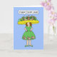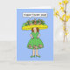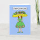 Ein Cartoon einer Dame, die ein fantastisches Osterkleid und eine Kappe trägt. Die Dame ist Sprichwort "Happy Oaster 2026". Das Bild hat einen blassblauen Hintergrund.