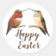 Happy Osteraufkleber mit zwei niedlichen Allen's Hummingbirds. Sobald die ersten Frühlingsstipps entlang der Pazifikküste zu sehen sind, kann man die Kruperei und den grünen Allen's Hummingbird rund um Kolibris sehen. Einige von ihnen verbringen den Winter in Mexiko, andere bleibe das ganze Jahr über in Südkalifornien.