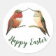 Happy Osteraufkleber mit zwei niedlichen Allen's Hummingbirds. Sobald die ersten Frühlingsstipps entlang der Pazifikküste zu sehen sind, kann man die Kruperei und den grünen Allen's Hummingbird rund um Kolibris sehen. Einige von ihnen verbringen den Winter in Mexiko, andere bleibe das ganze Jahr über in Südkalifornien.