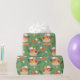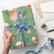 Das "Happy Oaster Baskets Spring Flowers Wrapping Paper enthält Osterkörbe voller süßer Leckereien, Frühlingsblumen und Vögel mit dem Text "Happy Oaster" in modernem weißem Schriftsatz auf grünem Hintergrund. Ideal für Ostern.