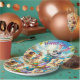 Ostersonne mit Kindern am Strand, "Happy Oaster!" schreibt oben. Osteressen oder Osterpicknick oder Osterpicknick mit Familie oder Kindern.