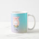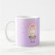Bearbeitbare Osterfertige Tasse. Das Design hat ein niedliches Hasen mit Blume und Texten in einem Ei und einem pastellfarbenen Hintergrund. Am unteren Rand können Sie den Text bearbeiten, indem Sie auf "Personalisieren Sie diese Vorlage - Details" klicken. Diese Tasse ist ideal, um Ihre Familie und Freunde zu empfangen und ihnen ein frohes Ostern zu wünschen.