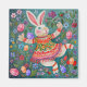 Frohe Ostern! Ein glücklicher Osterhase mit Blume und dekorierten Eiern.