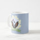 Diese glückliche Osterfeier-Tasse besticht durch einen hübschen blumengeschmückten Osterkranz mit grauen, sonnigen Ohren und Schmetterlingen auf blauem Hintergrund.