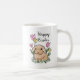 Diese bezaubernde Happy Oaster Tasse zeichnet sich durch eine niedliche, sonnige Illustration mit Frühlingsblumen und Gras aus.