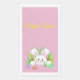 Dieses flauschig weiße Kaninchen guckt aus seinem Kaninchenloch, um dir ein glückliches Ostern zu wünschen. Der Hintergrund ist pink und Sie können ihn mit einer Farbe Ihrer Wahl anpassen. Sie können den Text personalisieren oder entfernen.