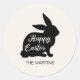 Happy Oaster Bunny Silhouette Schwarz-weiß Name Runder Aufkleber