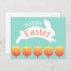 Senden Sie eine super niedliche Stimmung für Ostern! Diese Frühjahrskarte Ostern ist ideal für den Versand an Familie und Freunde. Es enthält den Satz "Happy Oaster", farbenfrohe orangefarbene Tulpen und ein weißes Schweizer Punktmuster über aquamarin.