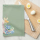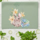 Nichts, wie dieses wunderschöne Küchentuch zu sehen, das an Ihrem Ofengriff hängt. Osterhase umgeben von gelben Narzissen und von einem Stapel Bücher mit Crocus'