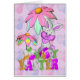 Ein niedlicher Cartoon-Hase sitzt auf seinem Ostereier, mit Schirm-Blume dahinter und dem Text .. Happy Oaster in einem Regenbogen von Farben .. perfekte Karte für alle Altersgruppen