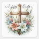 Happy Oaster Cross mit Osterlilies Quadratischer Aufkleber
