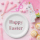 Happy Oaster Decorative Text mit bunten Ostereiern, Bundnies und Blume