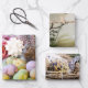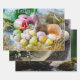 Osterpackende Papierblätter mit einer originellen Bildvielfalt mit Eiern und festlichen Federn. Schön, um Ihre Ostergeschenke in einer festlichen und persönlichen Weise zu verpacken.